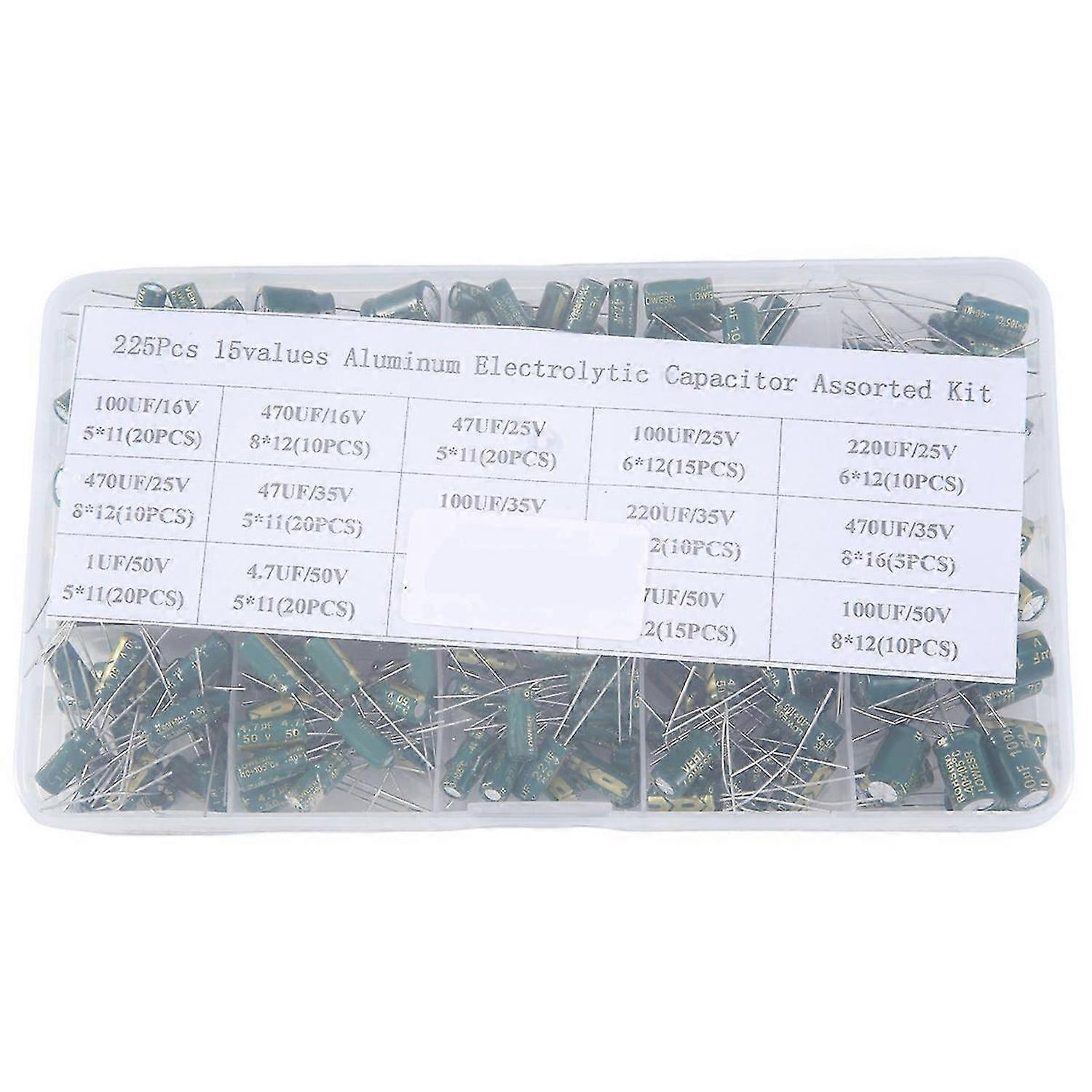 225Pcs Aluminum Electrolytic Capacitor High Frequency Inline Kit 15 Kinds of Specifications Resistan