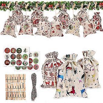 24 Christmas Calendar Bags Burlap Hanging Advent Calendar Garland Candy Gift Bag DIY Countdown