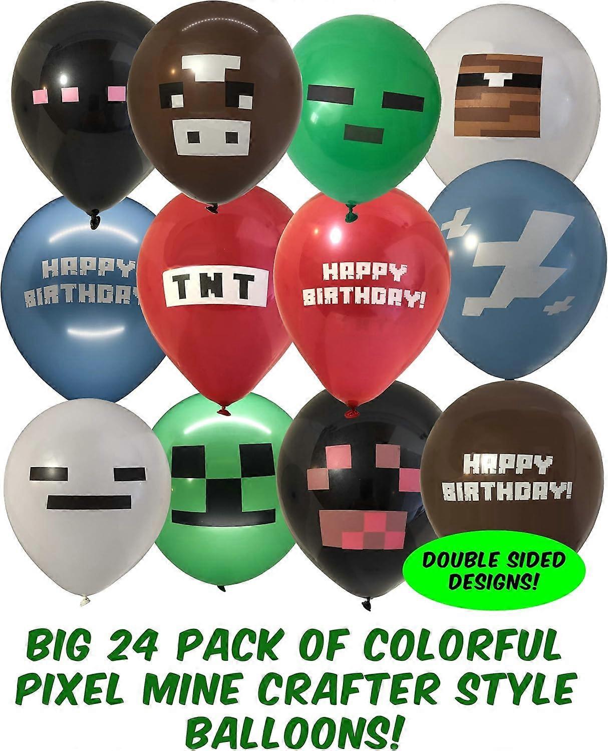 24 Pack For Pixel Miner Crafting Style Gamer Party Balloons - Large Double Sided 12" Latex Balloons - Gamer Birthday Party Supplies - TNT, Cow, Ghost,