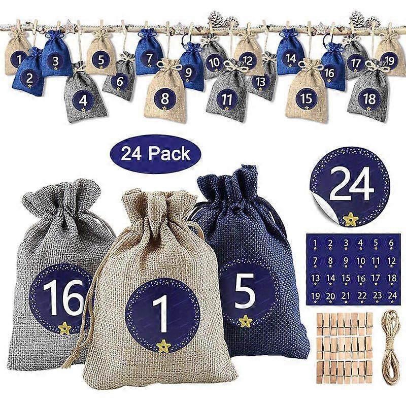 24 Fillable Advent Calendar Cloth Bag Advent Calendar for Men Women Kids with 1-24 Stickers Christmas Gift Bag