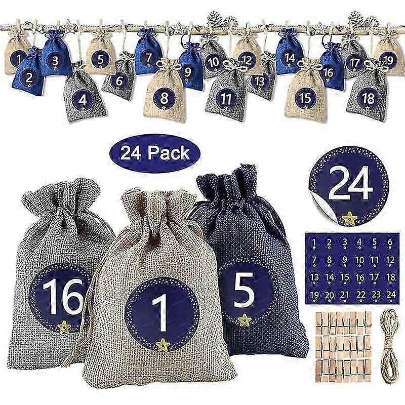 24 Fillable Advent Calendar Cloth Bag Advent Calendar for Men Women Kids with 1-24 Stickers Christmas Gift Bag