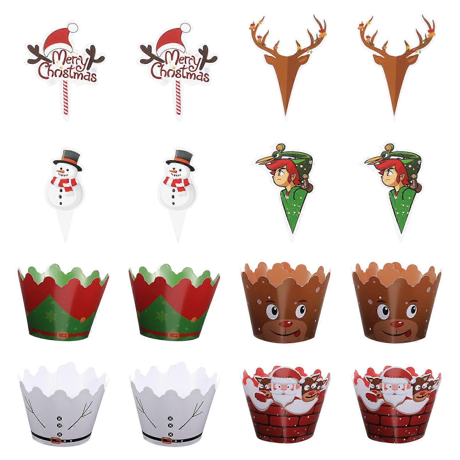 24pcs Delicate Christmas Cake Wrappers Paper Cupcake Toppers Ornaments
