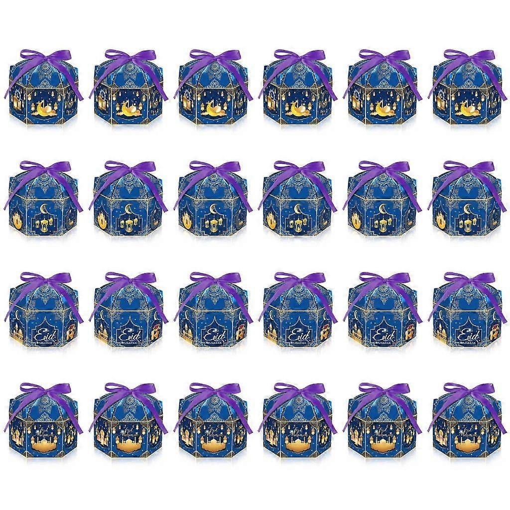 24PCS Gable Boxes and Gift Wrap Ribbons Eid Party Treat Boxes 6.88x5x3.5Inch