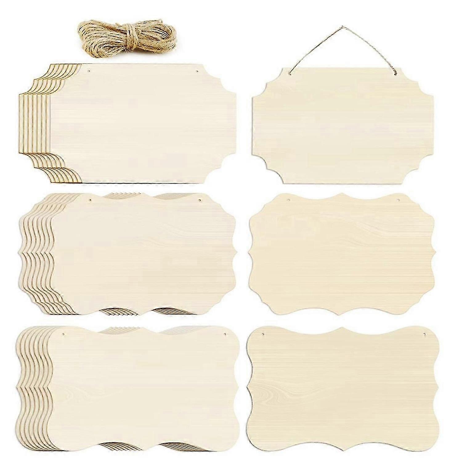 24 Pcs Unfinished Hanging Wood Sign Blank with Ropes,Rectangle Blank Wood Sign Plain Hanging Craft Door Signs Wall Art