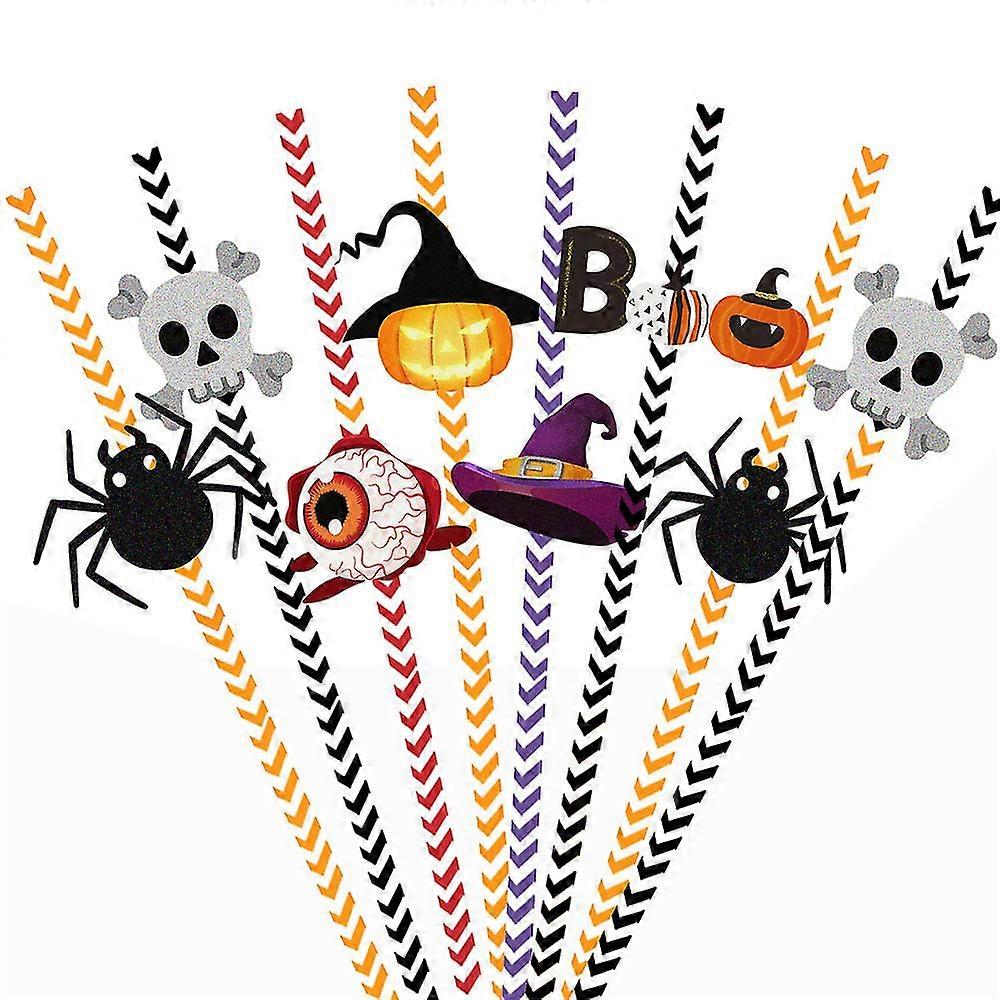 24pcs/set Halloween Paper Straws Biodegradable Disposable Drinking Straws For Halloween Party Tableware Supplies And Favors Kit