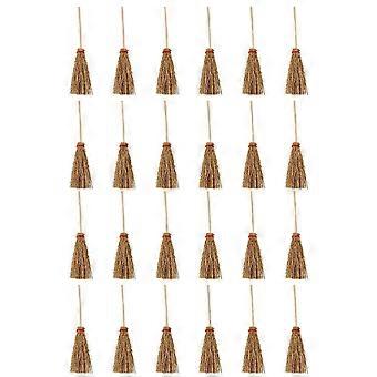 24Pcs Mini Broom Red Rope Straw Brooms Hanging Decorations