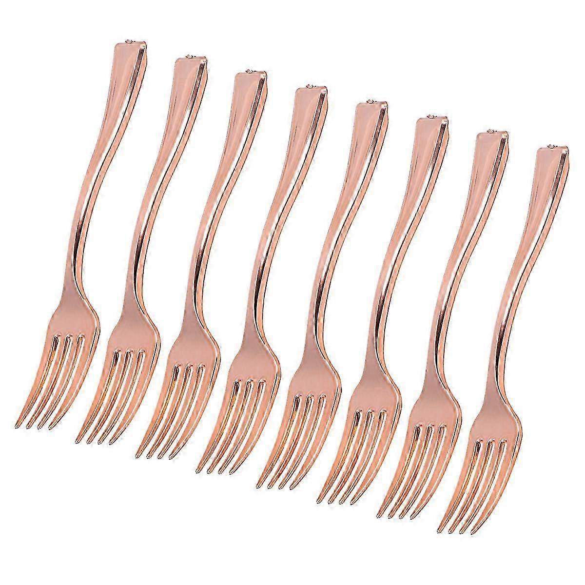 24pcs Disposable Mini Forks Fruit Dessert Pudding Forks Party Supplies for Restaurant KTV (Rose Gold)