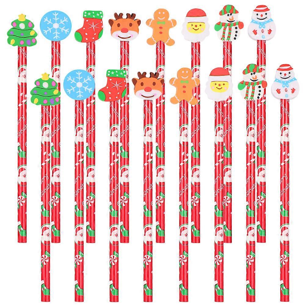 24pcs Christmas Pencils Eraser Topper Pencils Christmas Themed Pencils Party Favor