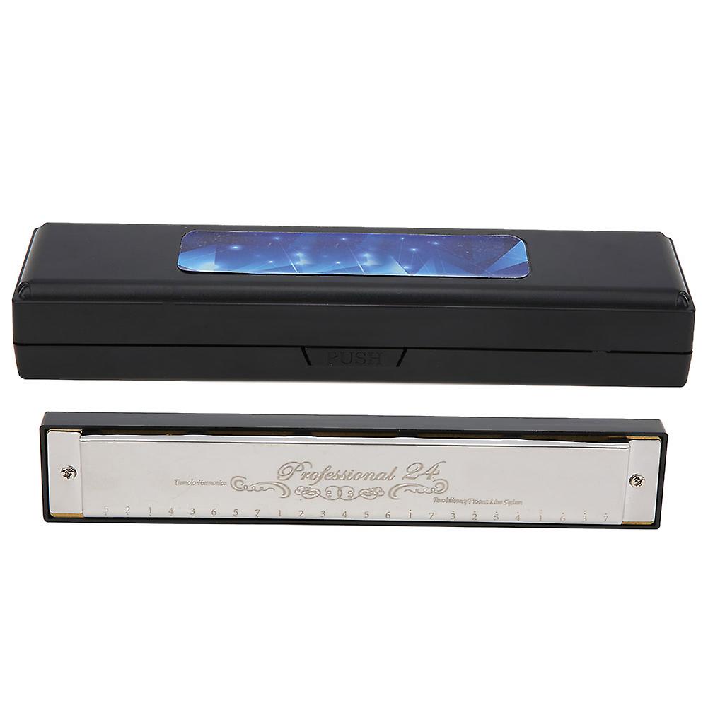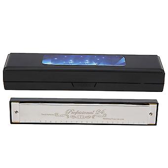 24 Hole Polyphonic Harmonica in C Key for Student, Adult and Beginner, with Resin Accented Mouth Organ, Silver