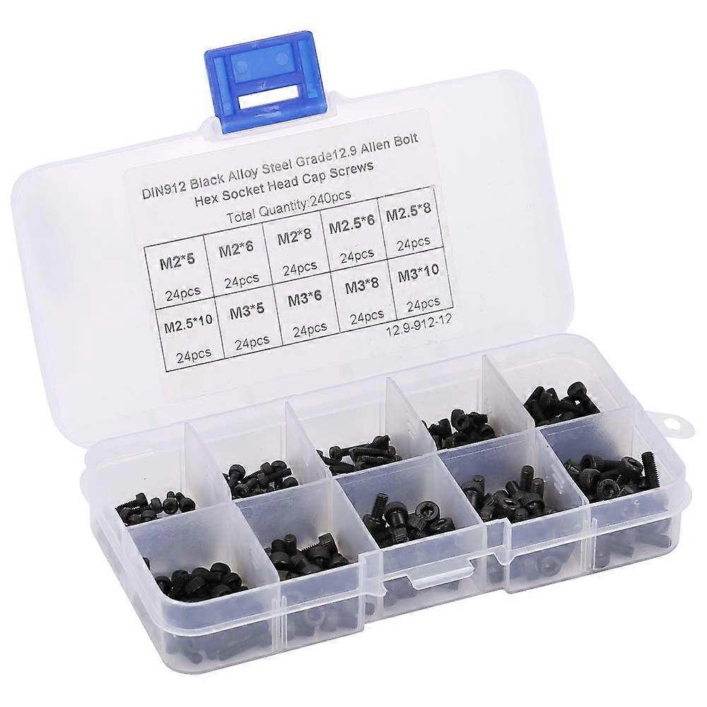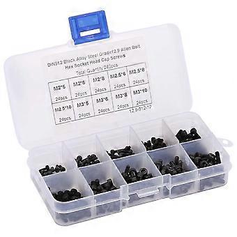 240pcs M2*5\M2*6\M2*8\M2.5*6\M2.5*8\M2.5*10\M3*5\M3*6\M3*8\M3*10Hex Socket Head Cap Screw Set