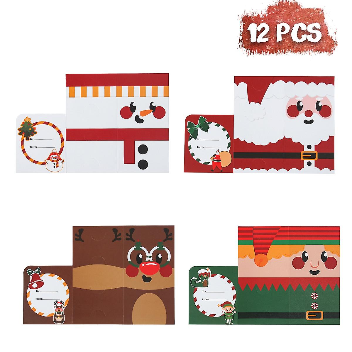 24/12pcs Christmas Pillow Shape Candy Box Merry Christmas Kraft Paper Gift Box Packging Kids Favors Happy New Year Navidad 2023