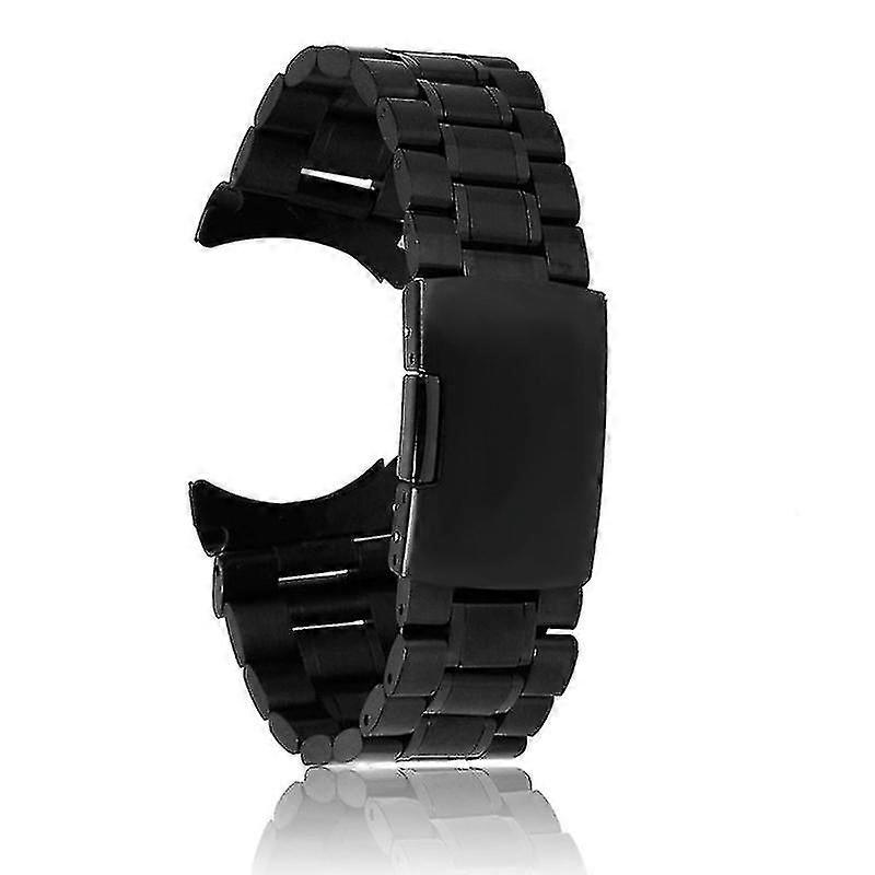 24mm Stainless Steel Solid Links Bracelet Watch Band Strap Curved End With 4pcs Watch Spring Bars (black)