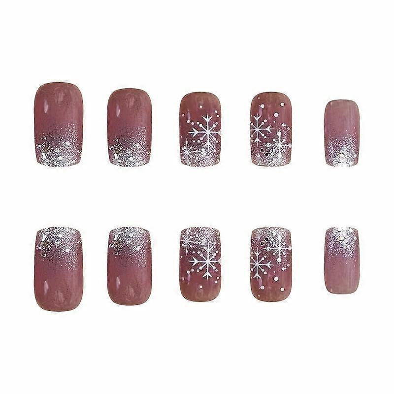 24pcs snowflake glitter nail art. The clear background is covered with fine snowflake sequins, like a winter dreamlike paradise falling on y