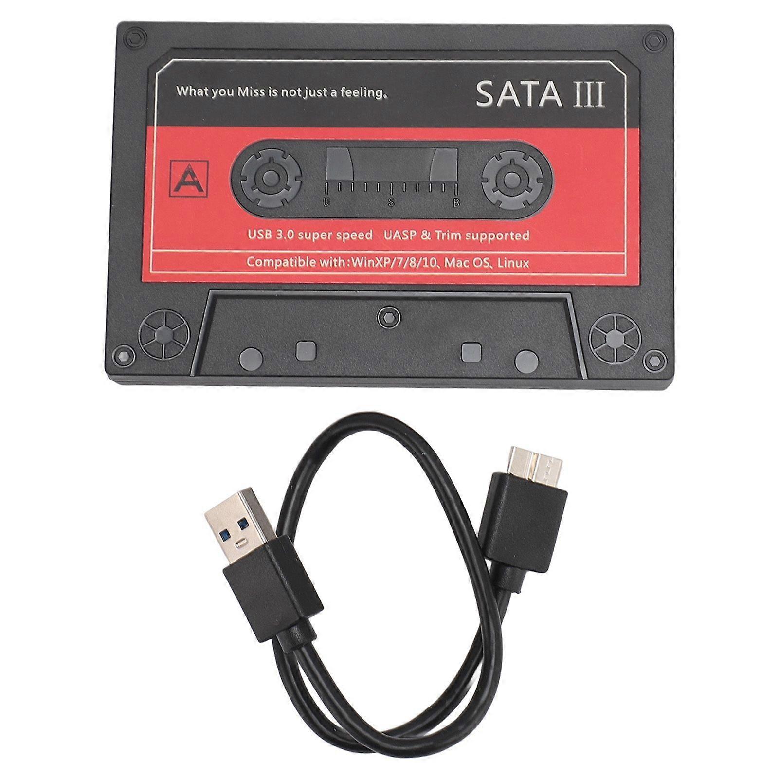 Feature:1. PROFESSIONAL DESIGN: 2.5 inch SSD enclosure, supports 2.5 inch HDDs with thickness of 7 9.5mm and below, universal for 2.5 inch mechanical HDDs HDDs and SSDs SSDs.2. HIGH SPEED TRANSFER RATE: 2.5 inch external hard drive enclosure has USB3.0 interface, high speed 5Gbps transfer rate, support I II III generation hard disk, support up to 6TB capacity.3. PLUG AND PLAY: The 2.5 inch to USB 3.0 hard drive enclosure is plug and play. You can use it to connect desktop computers, laptops, smart TVs, smartphones, tablets, etc. with USB 3.0 ports.4. COMPATIBLE SYSTEMS: 2.5 inch hard drive enclosure is compatible with multiple operating systems, for Win 7 8 10 11, for Linux, for OS X and other systems.5. ALUMINUM ALLOY MATERIAL: 2.5 inch to USB 3.0 hard drive enclosure is made of premium aluminum alloy, sturdy and lightweight, excellent heat dissipation, long lasting.Specification:Item Type: 2.5 Inch SSD EnclosureMaterial: Aluminum AlloyInterface: USB3.0Transfer Rate: 5GbpsSupported Capacity: 6TB(Maximum Supported Capacity,Not Inclube Hard Disk,No capacity) (Shipped Without)Applicable Hard Disk: 2.5 Inch 7 9.5mm SSD HDD.Package List:1 x 2.5 Inch SSD Enclosure1 x USB3.0 Data Cable