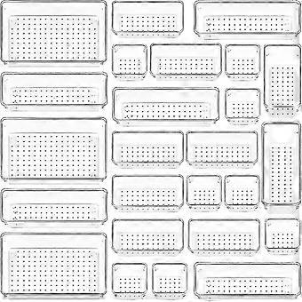 25 قطعة مجموعة منظمات درج بلاستيكي شفاف ، 4 أحجام حمام متعدد الاستخدامات وصواني منظم درج الغرور