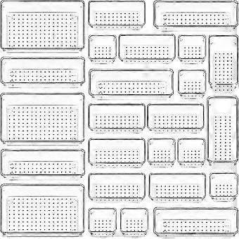 25 قطعة مجموعة منظمات درج بلاستيكي شفاف ، 4 أحجام حمام متعدد الاستخدامات وصواني منظم درج الغرور