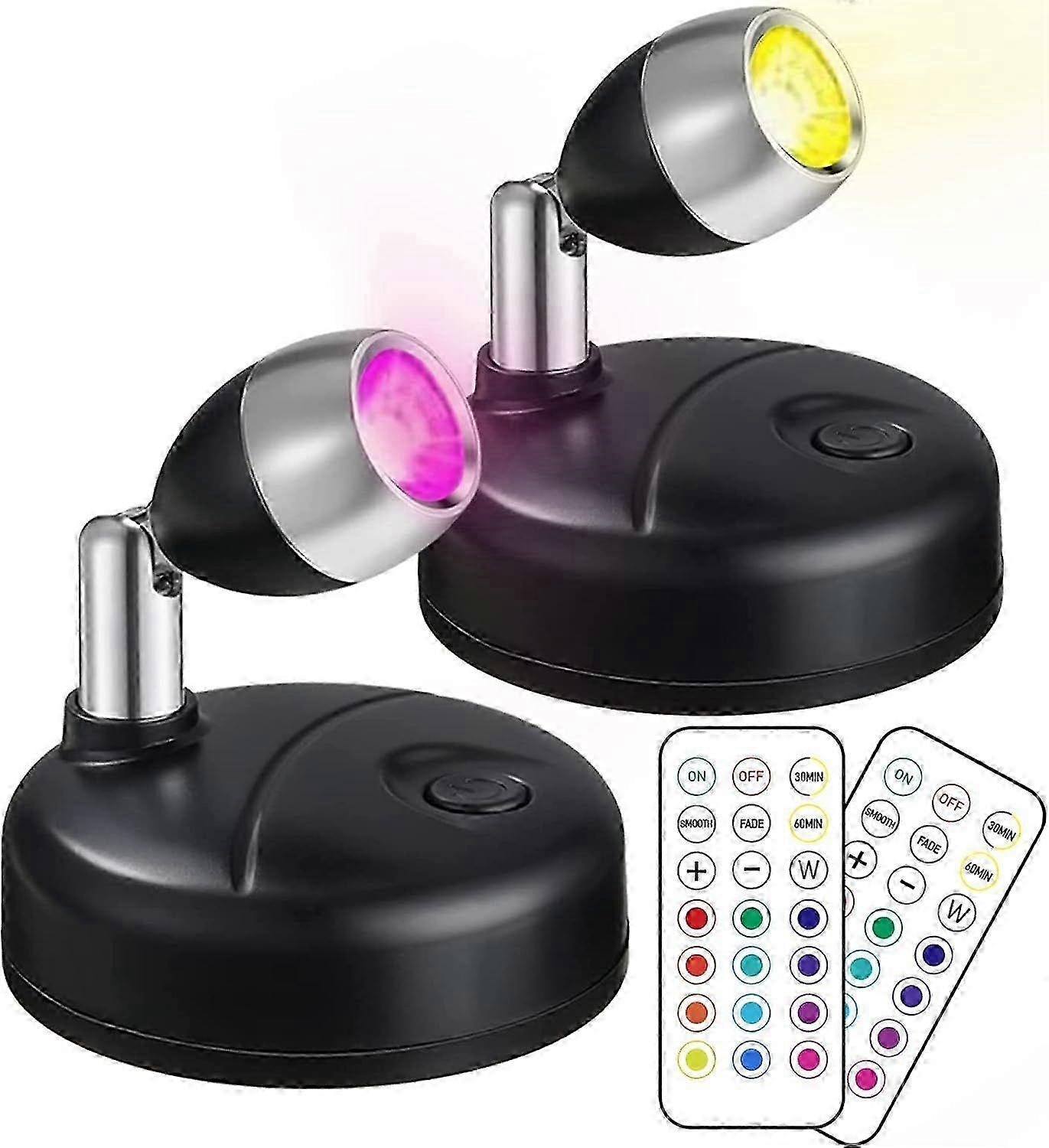25-26 2 Pack Mini RGB Battery Spotlights Indoor with Remote Control Wireless LED Spot Lights Stick On Picture Light with 13 Light Colors for