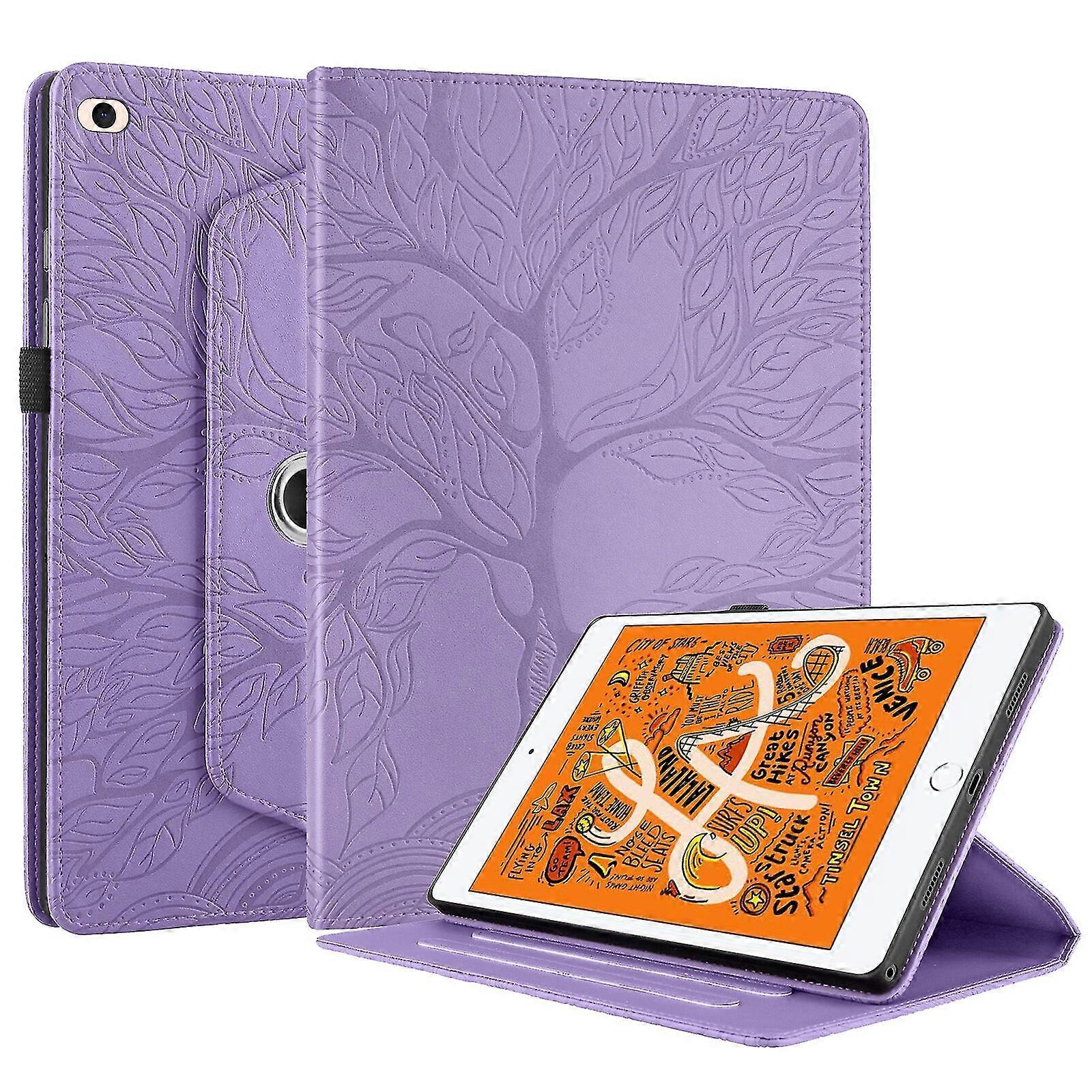 25-26 For iPad mini 1/2/3/4/5 Case, Premium 3D Embossed Tree Pattern Slim PU Leather Folio Cover With 360 Degree Rotating Stand,Purple