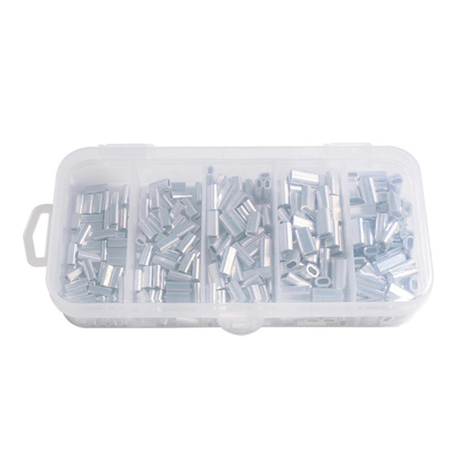 250pcs Aluminum Crimp Sleeves Connector Kit 5 Sizes Single Barrel Fishing Line Crimping Sleeves for Secure Wire Connections