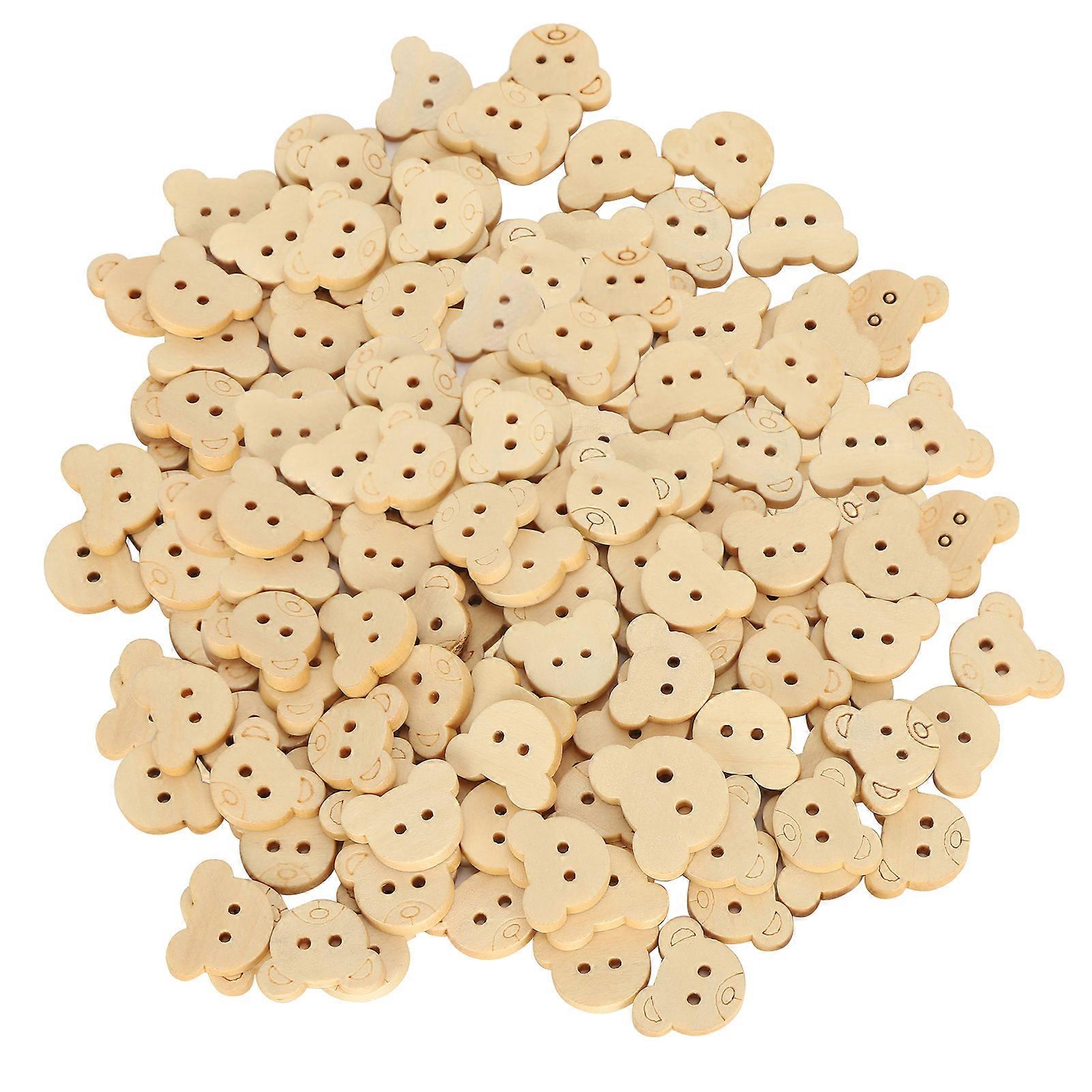 250pcs Wood Buttons Cute 2 Holes Bear Head Shape Wooden Sewing Buttons for Clothing DIY Craft
