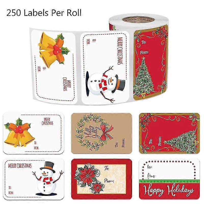 250pcs 6 Designs Adhesive Christmas Gift Name Tags Xmas Stickers Present Seal Labels Christmas Decals Gift Package Decor