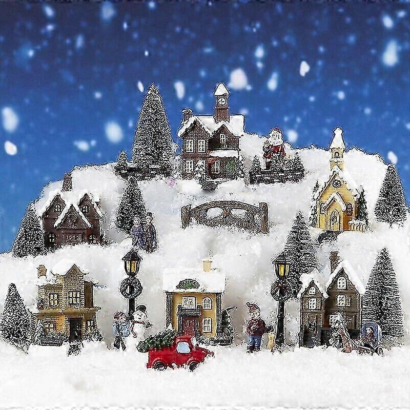 25pc Christmas Scene Set Miniature Light Up Led Mini Village Resin Figures Town