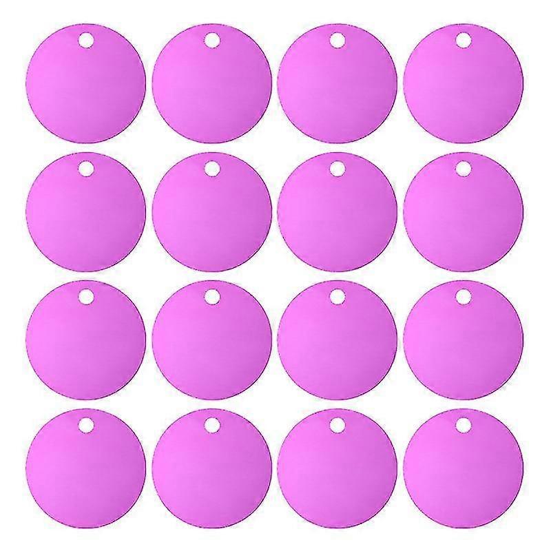 Feature - Color: Purple. - Material: aluminium alloy. - Size: Approx. 3.5 x 3.5 x 0.1 cm. - Anti-rust and corrosion resistance for durable and long-lasting use. - Round shape and bright color hanging tag for fashion and practical pendant use.