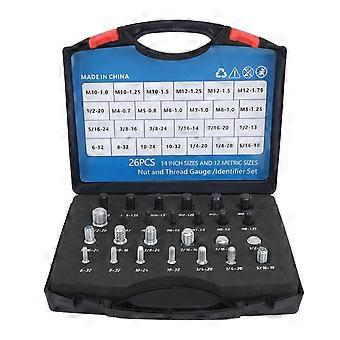 26 PCS Nut Bolt Thread Checker High Accuracy Carbon Steel ABS Nut and Bolt Thread Gauge Set for Detecting Fixed Bolts