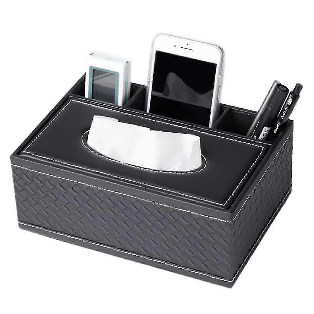 26-27 Leather tissue box - woven pattern flat four grid