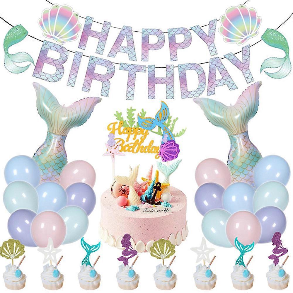 28pcs Mermaid Birthday Party Decorations Supplies Balloons Happy Birthday Banner