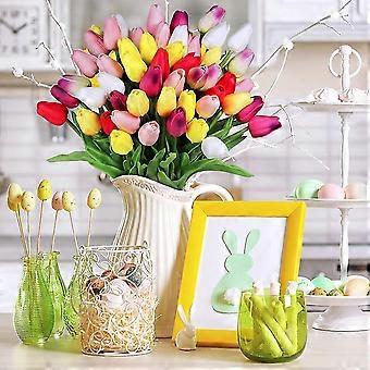QUANTITY: Package includes 28pcs multi-color tulip artificial flowers Faux tulip stems realism PU tulips. These are individual stems, easy to arrange. You can use them individually or in combination. SIZE: Each faux tulip stem is approximately 14 inches tall, perfect for placing in a medium sized vase. The tulip buds in various colors are 1.8 inches long and 1 inch wide. COLORS: these fake tulips come in multi-color combinations of white, pink, yellow, orange, red, rosy red and purple. These fake tulips are an excellent choice when you need brilliant colors because they can match your different decorative projects. MATERIALS These multi-colored tulips are made of polyurethane material, which has a realistic texture and is sturdier than regular silk flowers. The flexible stems allow you to bend and arrange the tulip flowers in a realistic manner. Unlike real tulips, whose petals fade after a few days, these lifelike artificial tulip flowers will stay fresh forever. Lifelike multi-colored artificial tulip stems are perfect for Easter brunch centerpieces, spring flower arrangements, tulip spring wreaths, wedding bouquets, colorful spring displays, sunshine basket projects, garden themed parties and tulip festival decorations. Multi-colored fake tulips can also be used as Mother's Day gifts, birthday gifts, anniversary gifts, thank you gifts, coworker parting gifts, spring gifts and more.