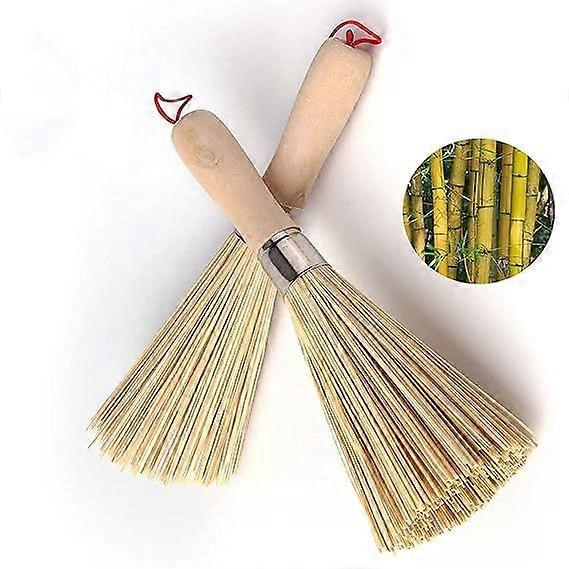 2Pack Traditional Natural Bamboo Wok Brushes , Kitchen Cleaning Brush, Bamboo Kitchen pan Brush, for Cleaning Dishes, Cast Iron Pots, Pans, Vegetables