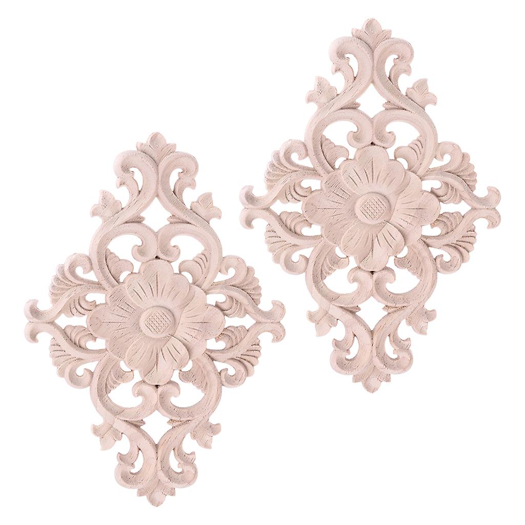 2pcs Wood Carved Onlay Corner Applique Moulding Decal Furniture Cabinet Door