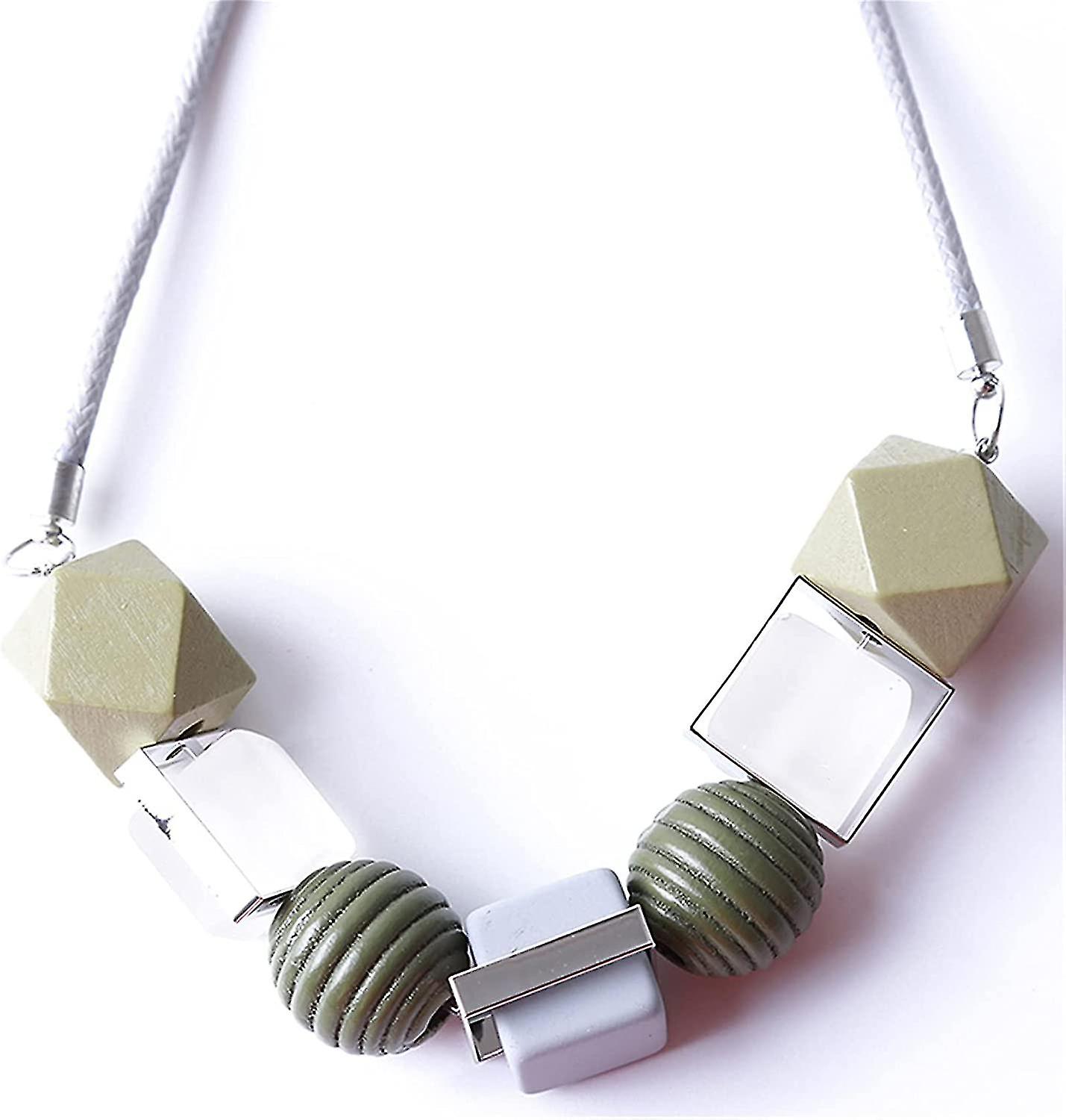 2pcs Colorful Wood Beaded Necklace Geometric Pendant Necklace For Women Girls (d-8d)