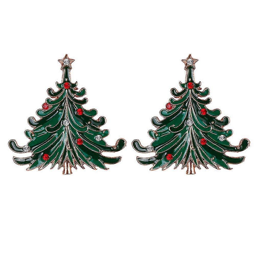 2pcs Vintage Christmas Tree Brooch Rhinestone Inlaid Brooch For Xmas Winter Party (xz80)