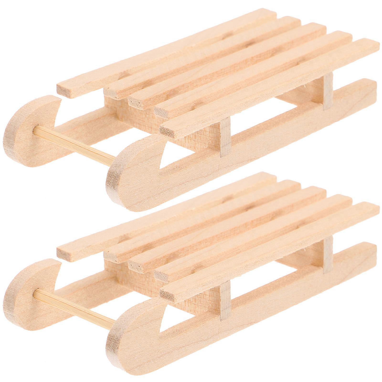 2pcs Doll House Sleigh Ornament Christmas Scene Model Accessories Doll House Wooden Sleigh