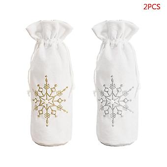 2pcs Christmas Snowflake Champagne Red Wine Bottle Cover Drawstring Bag Party Table Decorations