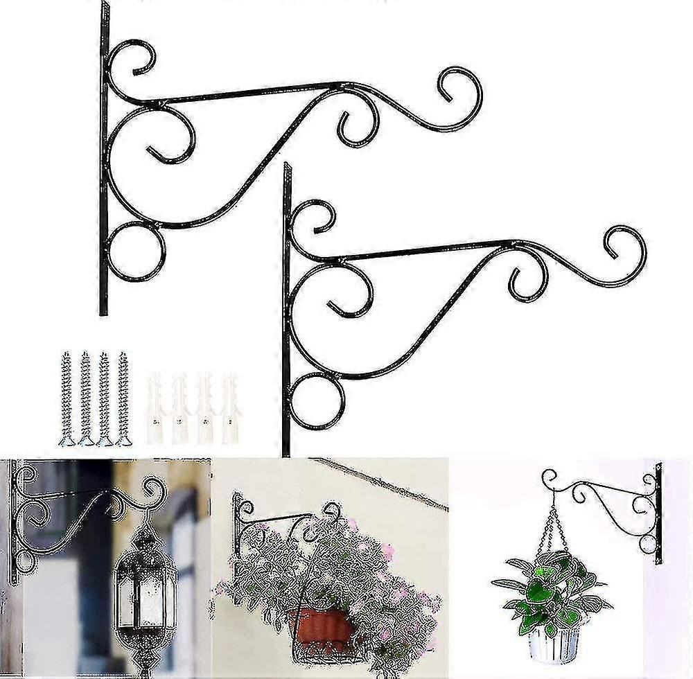 2pcs Flower Pot Iron Wall Hook Holder, Plant Hanger Wall Mount With Bird Shape Screws For Lantern Basket, Outdoor Balcony Garden Decoration (black) Au