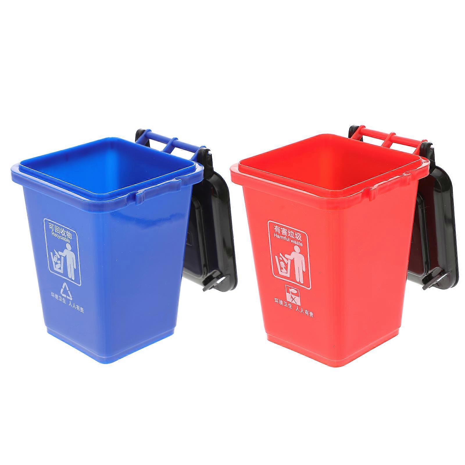 2PCS Creative Pen Holder Personality Trash Can Shape Pen Holder Multi-function Classification Trash Can Pen Holder Desktop Storage Box(Red + Blue)