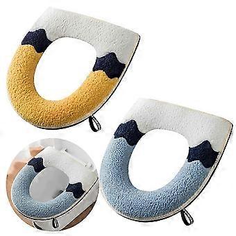 2Pcs Thickened Reusable Toilet Seat Covers with Handle & Zipper Pads in Yellow and Blue for Enhanced Comfort