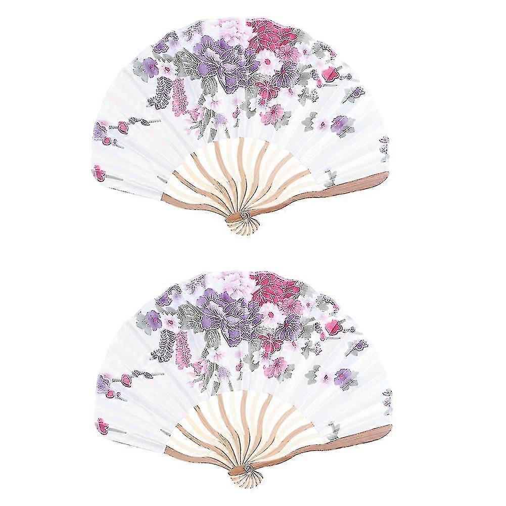 2x Bamboo Flower Printed Japanese Style Foldable Hand Held Fan Gift Decor
