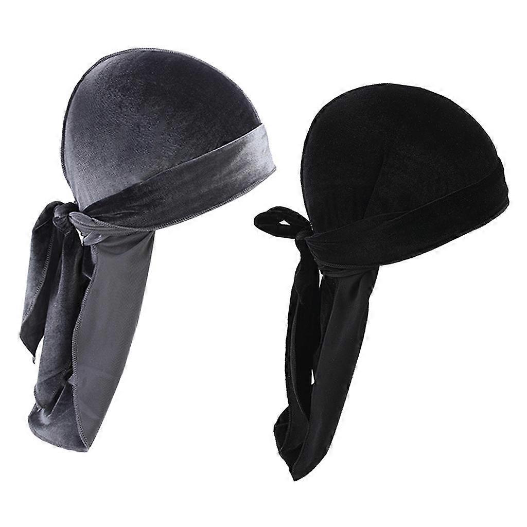 2x Luxury Solid Velvet Long Tail Bandana Turban Hat Headwear Wave Cap Headscarf