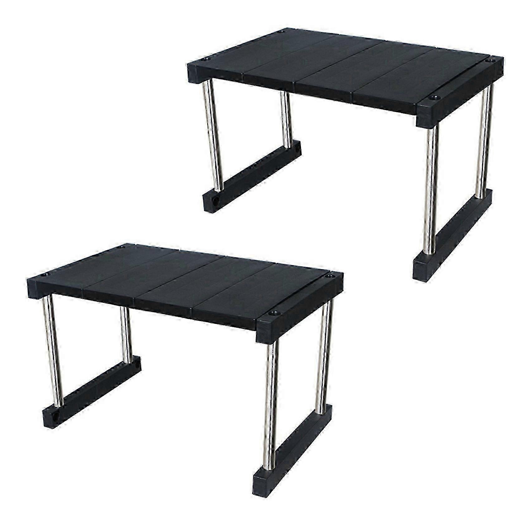 2X Kitchen Cabinet Counter Shelf Organizer Expandable Stackable Spice Rack for Dish Sauce Black hwy