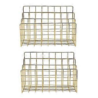 2x Nordic Style Iron Art Grid Storage Rack Book Holder Three Layer Desktop Magazine Shelf (gold)