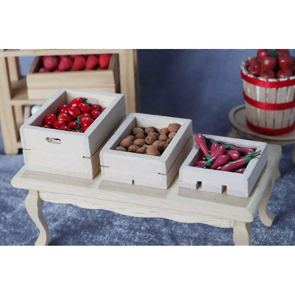 2x 1:12 Dollhouse Miniature Wooden Fruit Vegetable Storage Box Model Decor