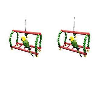2x Birds Cage Hanging Swing Toys Ladder Stand Perch For Small To Large Birds