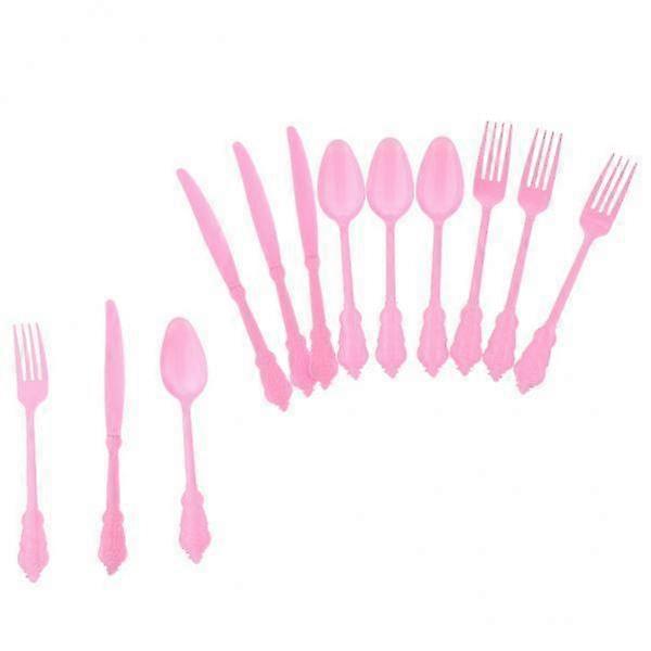 2x12pcs Embossed Disposable Cutlery Kid Birthday Party Tableware Decor Pink