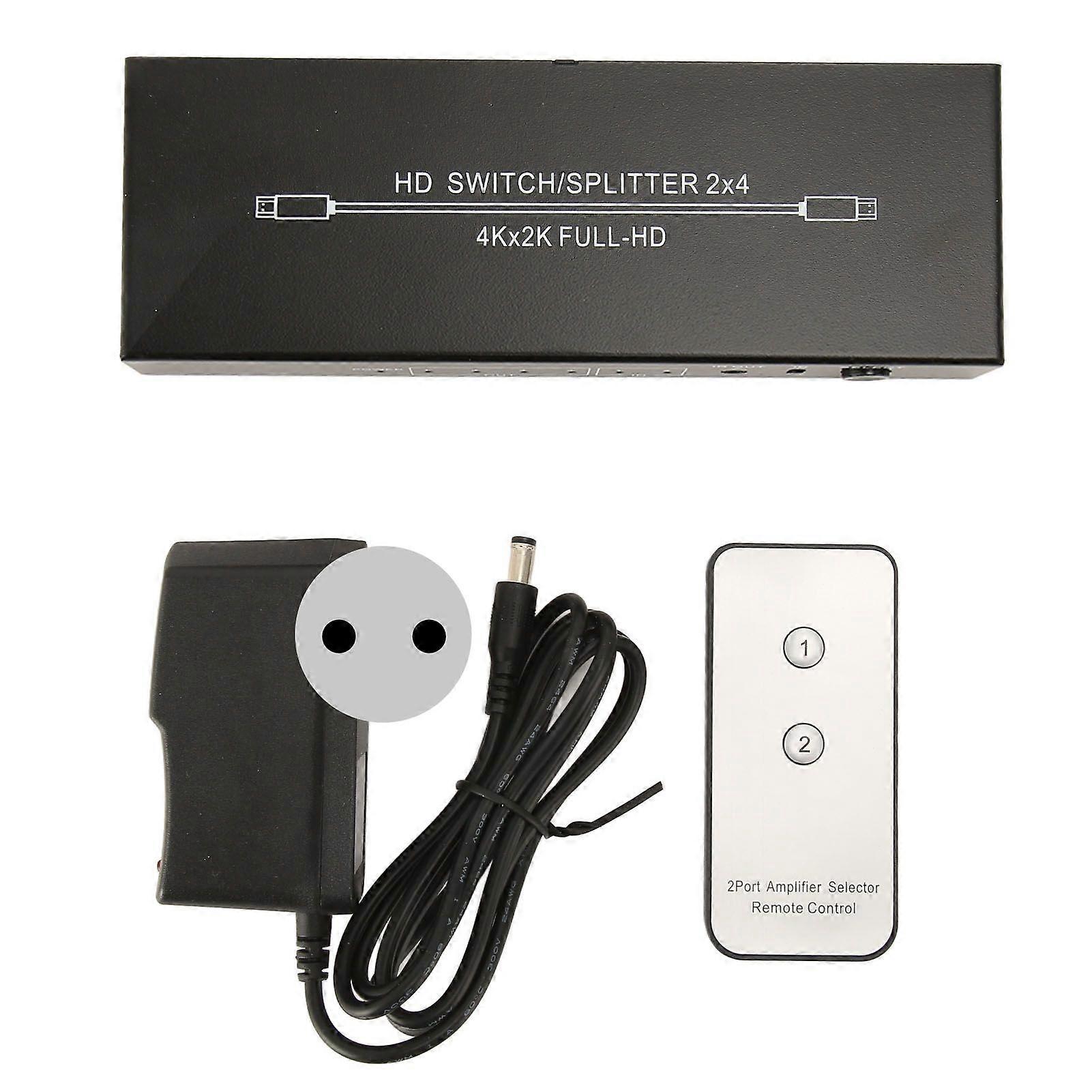 2x4 HD Multimedia Interface Splitter 2 in 4 Out 4Kx2K At 60Hz HD Multimedia Interface Switch with Remote Control 100240V EU Plug