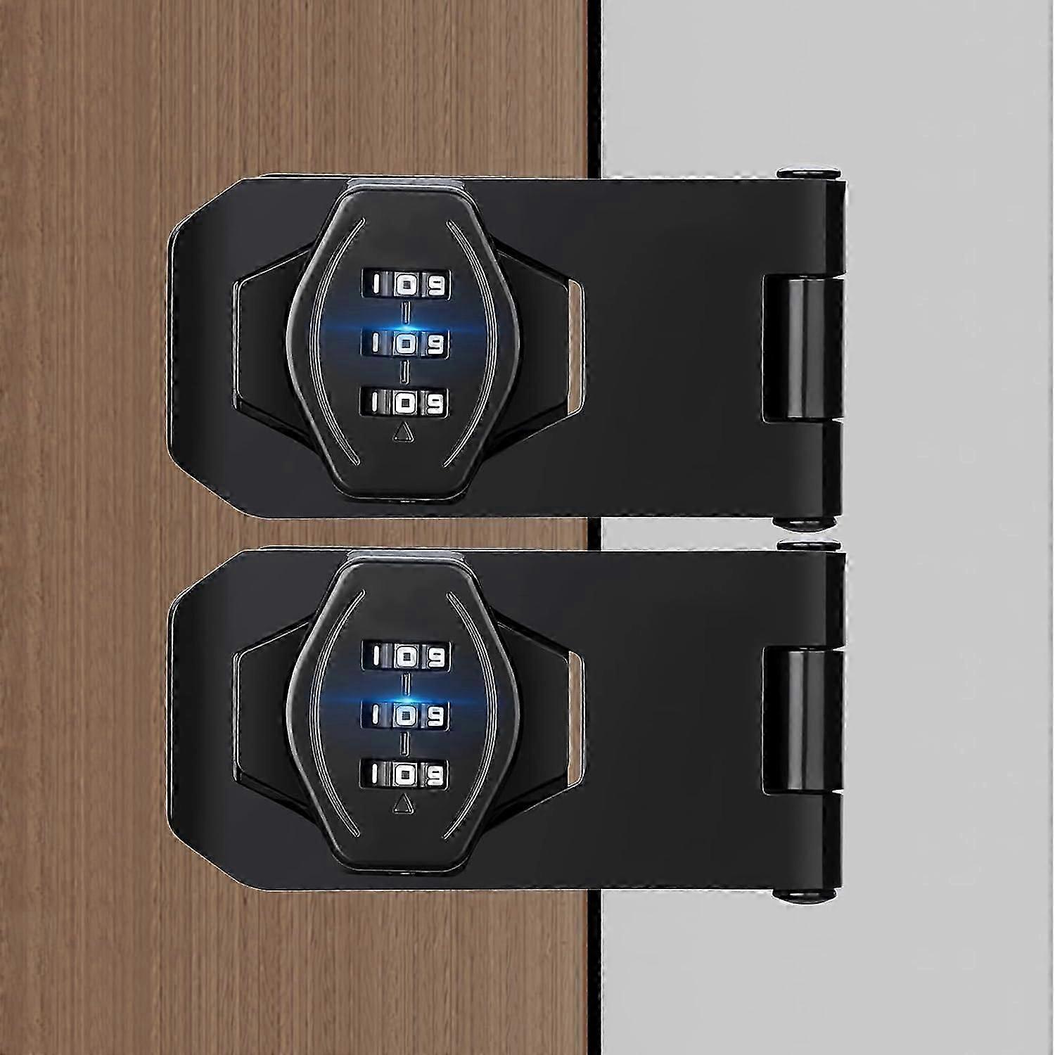 3 Digit Combination Rotary Hasp Lock for Pantry Door - Slide Double Bifold Door Lock for Closet Drawer Garage Gate Shed Barn Pantry 3" 2pcs Black-2025