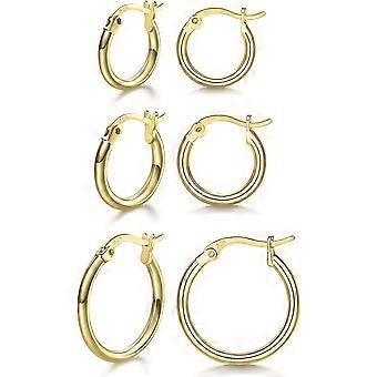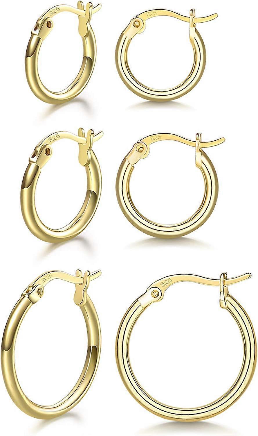 3 Pairs 925 Sterling Silver Hoop Earrings | Small White Gold Plated Hoop Earrings for Women Girls (13mm,15mm,20mm25mm,30mm,40mm,50mm,60mm) 1Gold-13/15